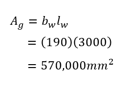 For calculating the uncracked moment of inertia, the centre of mass is needed to know about which location the stiffness be taken. Seeing as the example wall is symmetric, the centre of mass is the horizontal middle of the wall (L/2) but the calculation is shown below to verify.