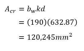 The total axial seismic load is needed to calculate the effective stiffness, as well as the cracked moment of inertia which serves as a lower bound to compare against. Starting with the cracked moment of inertia, the location about which the first moment’s of area between compression and tension are balanced can be solved for and is determined by MASS in this case to be 632.87mm. Based on this crack depth, the moment of inertia taken about this location is calculated below: