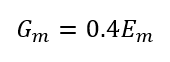 Shear Modulus, or Gm, is a fairly straight forward calculation for a shear wall. It can be related to the reference Modulus of Elasticity, Em, as: