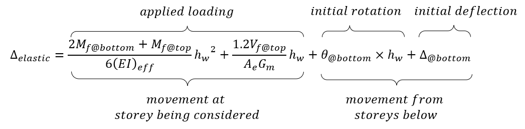 All of the movements (lateral deflections and rotations) discussed in the rest of this article are elastic, with the conversion to drift values done once the elastic movement has been calculated for the entire multi-storey shear wall.