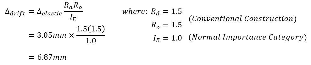 To go from this deflection to a usable drift value to check against drift limits, the linear elastic deflection must be multiplied by the product of Rd and Ro, divided by the factor attributed to the Importance category: