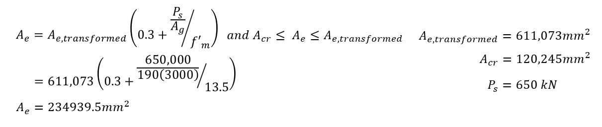 The uncracked area is the highest possible value for the effective area allowed by CSA S304: 16.3.3, explained above (click to jump).