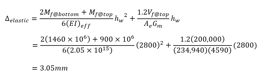 And there you have it! The total drift at the top of storey 1 in the example shear wall will be 6.87mm. This can be compared to the limits outlined in NBCC 2015: 4.1.8.13(2):